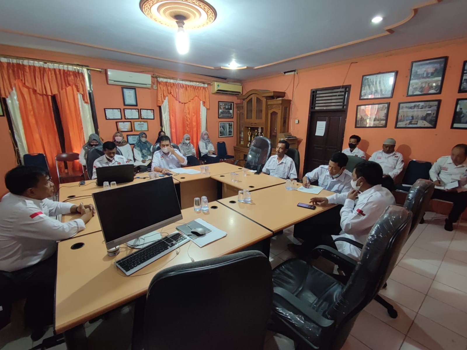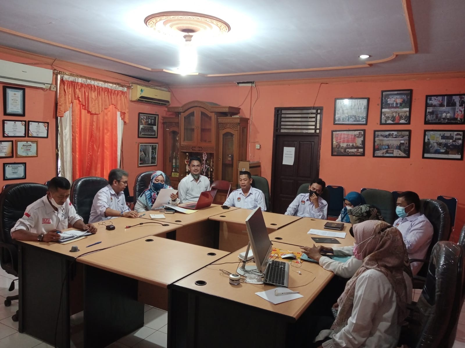 Cilegon – KPU Kota Cilegon menyelenggarakan Rapat Dinas Rutin setiap hari senin, setelah dilaksanakannya apel pagi (30/5). Pada rapat tersebut ada beberapa poin penting yang dibahas dari subbagian Hukum dan SDM yaitu data seluruh pegawai termasuk data komisioner beserta staff sekretariat yang tercakup dalam link google sheet (SK CPNS, SPMT, SK PNS, SK Jabatan, kenaikan gaji berkala, surat menikah, FC SKP 2020, 2021 FC Satya Rencana, kartu Taspen, Kartu ID Card, Penguatan Kelembagaan, SK POKJA). Kemudian dilanjutkan dengan pembahasan dari subbagian Keuangan, Umum, dan Logistik yang meliputi Surat Perintah terkait persetujuan penghapusan BMN, bahwa hal tersebut telah diajukan ke KPKNL. Serta terkait pembuatan ID Card telah dikoordinasikan dengan PPK. Pembahasan selanjutnya yakni dari Subbagian Perencanaan, Data, dan Informasi terkait agenda Rapat Koordinasi DPB internal besok, yang menunggu hasil sinkronisasi atau verifikasi dengan pihak Disdukcapil. Kemudian membahas tentang pergantian tugas tanggung jawab Pramu Bhakti, agenda diklat teknis kepemiluan yang kemungkinan dimulai pada awal bulan juni, dan pembuatan Kerangka Acuan Kinerja (KAK) serta Rincian Anggaran Biaya (RAB) telah selesai. Kemudian dilanjutkan pemaparan singkat dari subbagian teknis dan hupmas yang membahas tentang seragam KPU, draft kegiatan penguatan kelembagaan, laporan DPB ke PPID, serta progress website terbaru yakni penambahan fitur tombol social media WhatsApp ke website resmi KPU kota Cilegon. Menurut Bapak Mulya Mansur, S.Pd.I selaku Koordinator Divisi Perencanaan, Data, dan Informasi bahwa sebagai penyelenggara pemilu terkait security arsip perangkat komputer dan Publikasi kegiatan wajib untuk diperhatikan dan dikelola dengan hati-hati. Closing statement dari beliau yaitu, “Momentum di setiap hari rapat adalah saling membantu dan mengkoreksi apabila terdapat kendala dalam setiap kegiatan.”