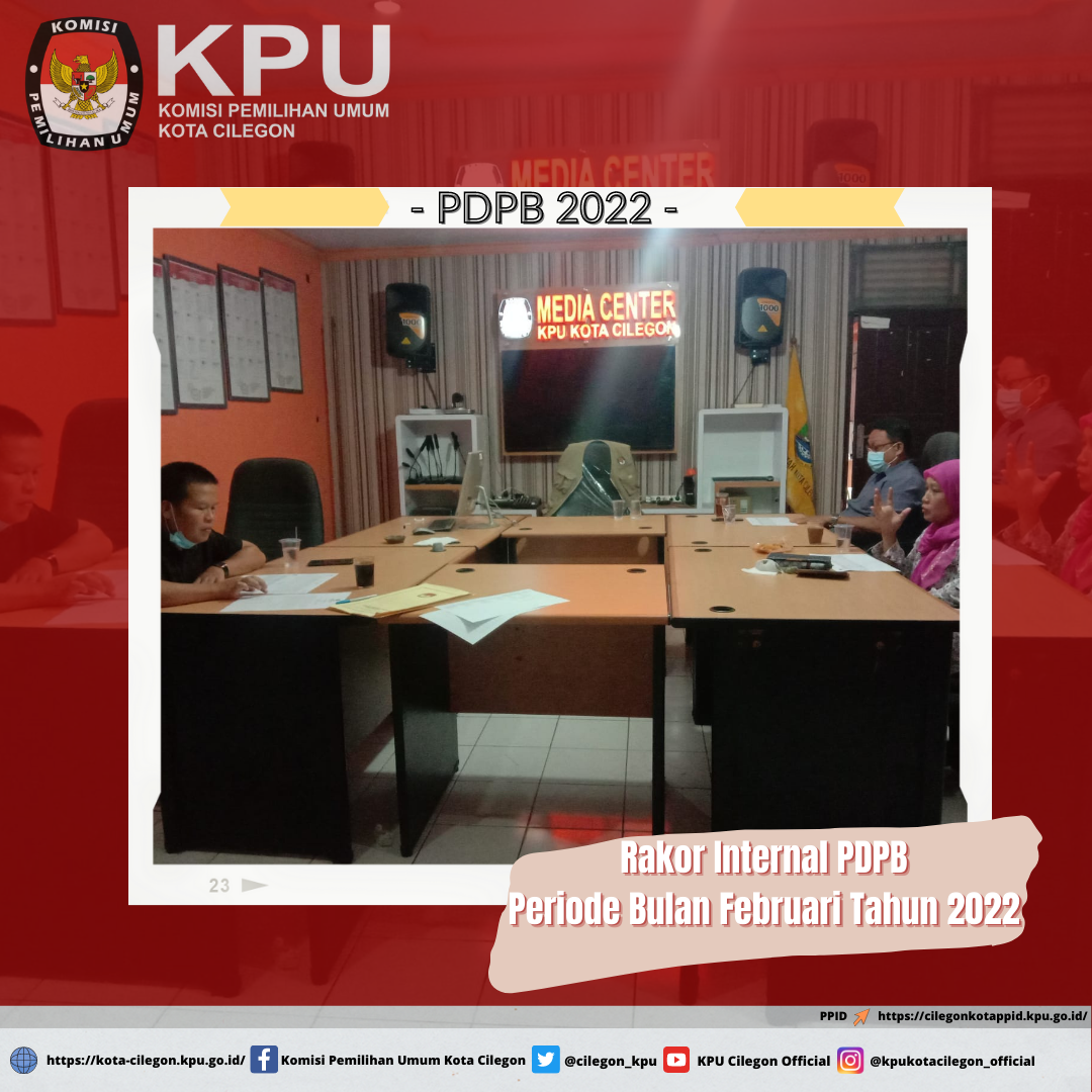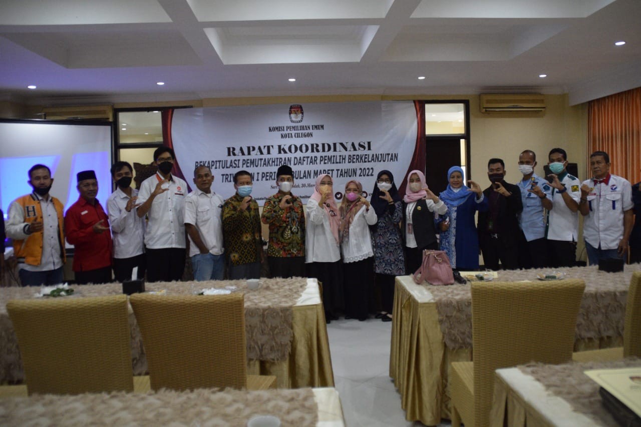 Cilegon - KPU Kota Cilegon menyelenggarakan kegiatan Rapat Koordinasi Rekapitulasi Pemutakhiran Daftar Pemilih Berkelanjutan Triwulan I Periode bulan Maret tahun 2022 sekaligus sosialisasi PKPU Nomor 6 tahun 2021 di Sari Kuring Indah, Cilegon pada pukul 10.00 WIB dengan menerapkan protokol kesehatan (30/3). Pada acara tersebut, turut mengundang KPU Provinsi Banten, Bawaslu Kota Cilegon, Disdukcapil Kota Cilegon, Dinkes Kota Cilegon, Kominfo Kota Cilegon, Badan Kesbangpol Kota Cilegon, Polres Kota Cilegon, KODIM 0623 Kota Cilegon, Pengadilan Agama Kota Cilegon, Partai Politik se-Kota Cilegon, dan Lapas Kota Cilegon.