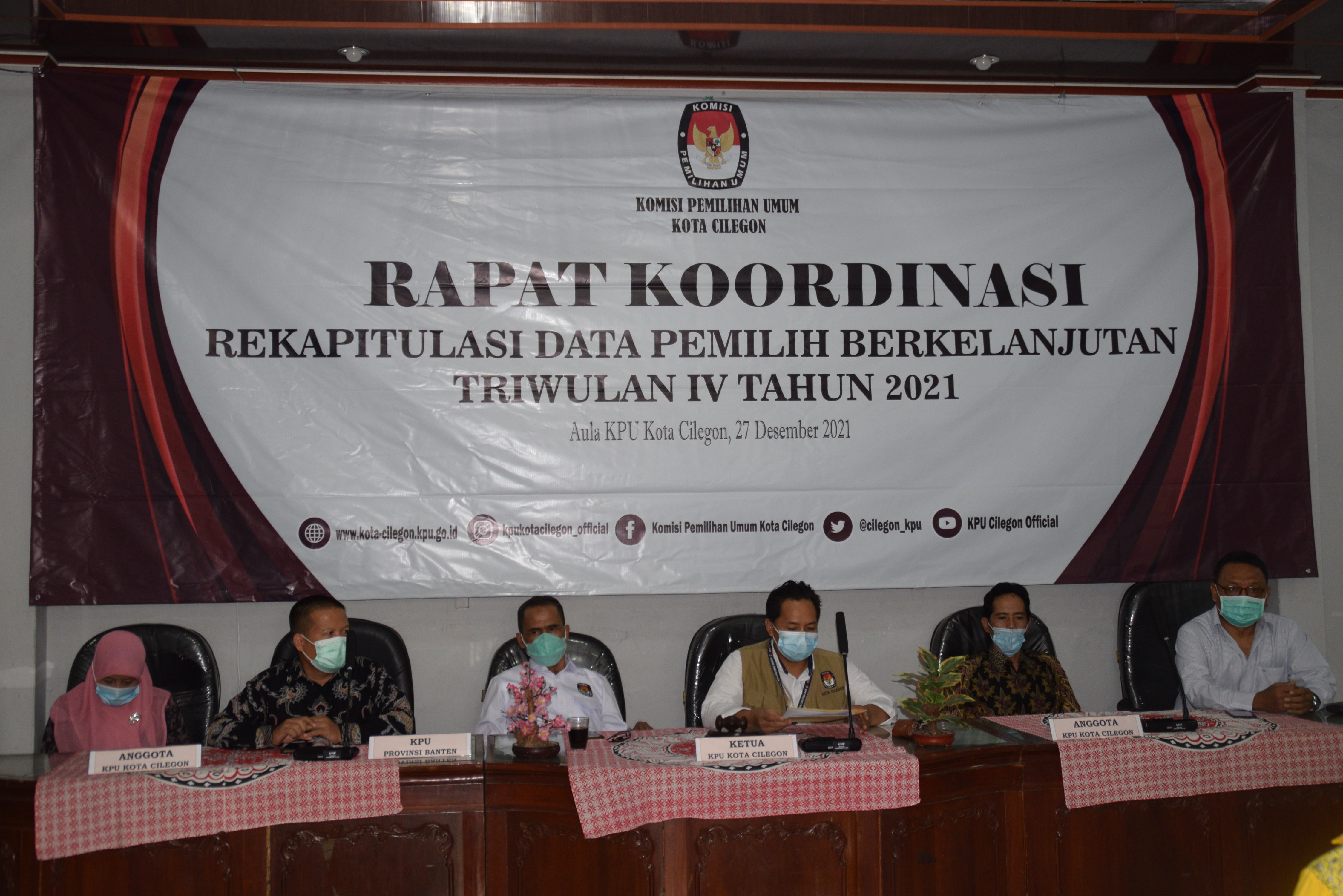 Hari ini (27/12) KPU Kota Cilegon menyelenggarakan Rapat Koordinasi Rekapitulasi Data Pemilih Berkelanjutan Triwulan IV Tahun 2021 di Aula KPU Kota Cilegon. Pada Rapat Koordinasi tersebut turut mengundang beberapa instansi terkait dan partai politik, antara lain; KPU Provinsi Banten, Bawaslu Kota Cilegon, Disdukcapil Kota Cilegon, Kesbangpol Kota Cilegon, Polres Kota Cilegon, Kodim 0623 Kota Cilegon, Pengadilan Agama Kota Cilegon, Dinkes Kota Cilegon, Kominfo Kota Cilegon, serta Perwakilan DPC Partai Politik se-Kota Cilegon. Kegiatan Rapat Koordinasi tersebut sesuai dengan amanah pada Surat Edaran Ketua KPU RI Nomor: 366/PL.02-SD/01/KPU/IV/2021 tanggal 21 April 2021 perihal Perubahan Surat Ketua KPU RI Nomor 132/PL.02-SD/01/KPU/II/2021 perihal Pemutakhiran Data Pemilih Berkelanjutan Tahun 2021, yang menyatakan bahwa KPU wajib menggelar Rapat Koordinasi dengan Stakeholder per tiga bulan sekali dan secara internal setiap bulan.