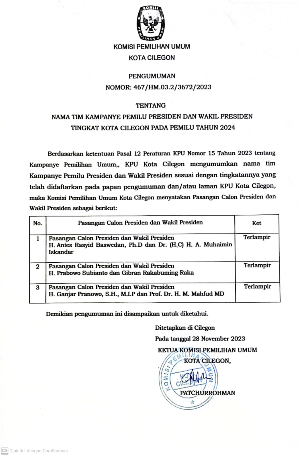 Informasi lebih lanjut dapat menghubungi helpdesk pencalonan KPU Kota Cilegon